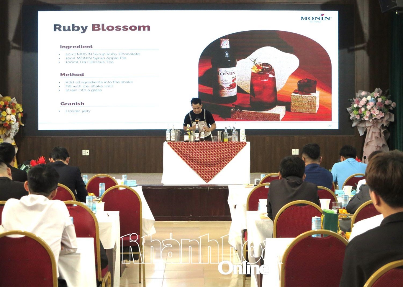 Đại diện doanh nghiệp chia sẻ công thức trong pha chế đồ uống.