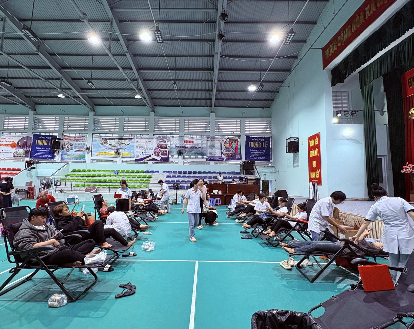 Hình ảnh cán bộ giảng viên, người lao động, sinh viên Nhà trường tham gia hiến máu